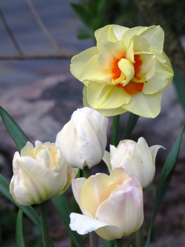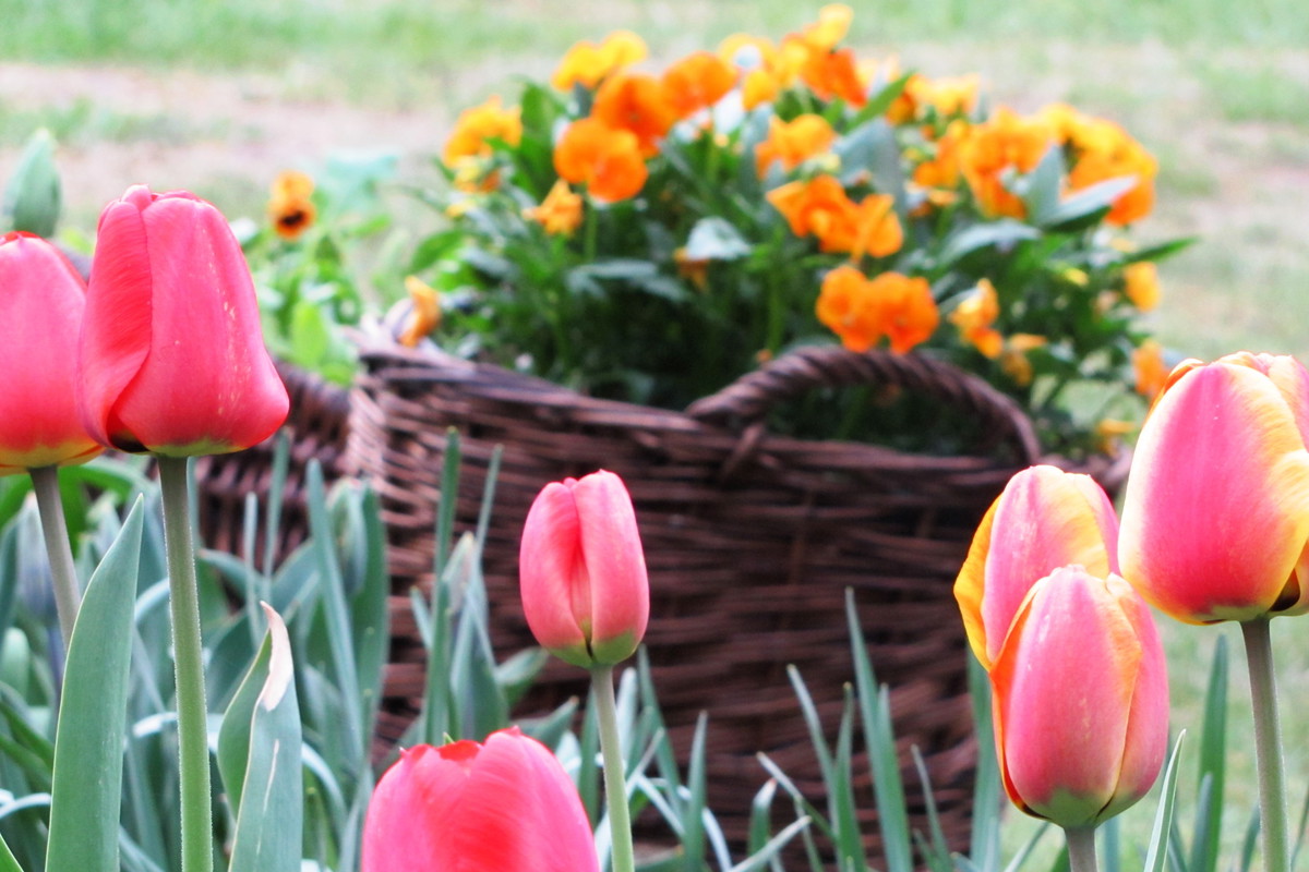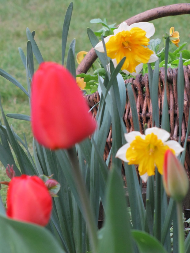 Narcyzy, tawułki, bratki, żonkile, szafirki. I kolorowa, wiosenna rabata gotowa. Dopełnieniem mogą byc stare wiklinowe kosze, kamienie, grys. Zapraszam do zajrzenia i polubienia strony F page: Czak Noris - mikolaja.......................................................................................................................................