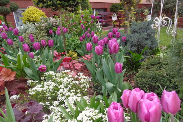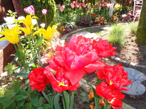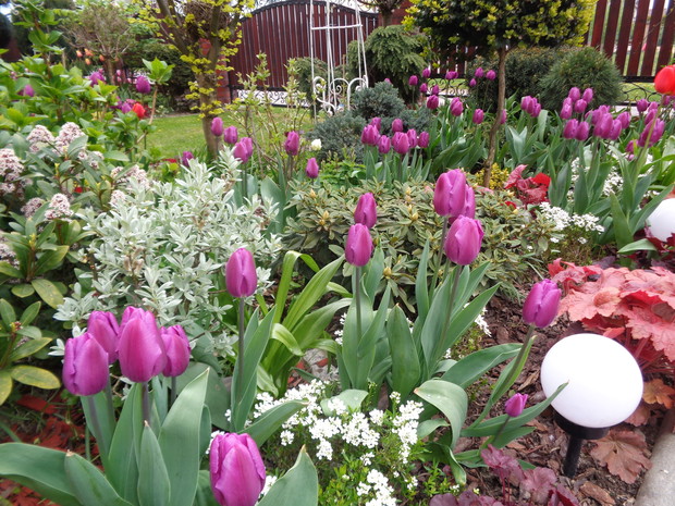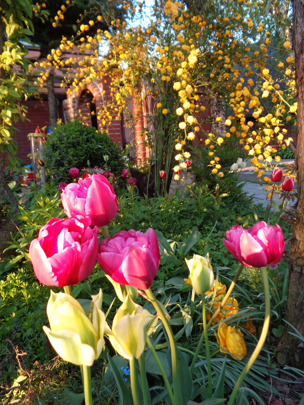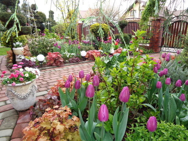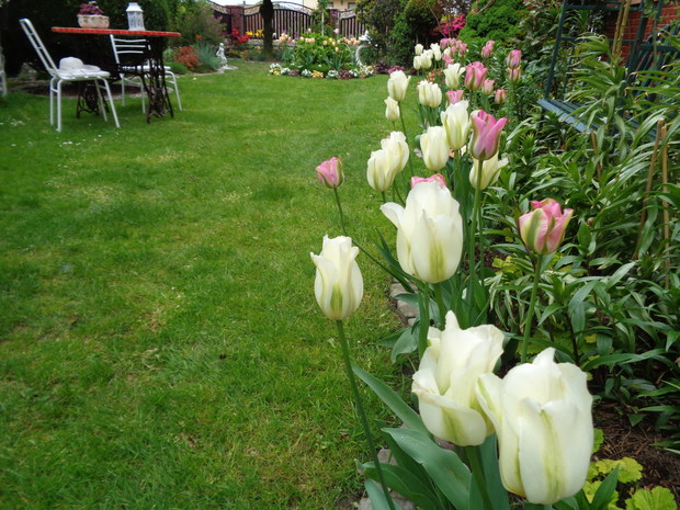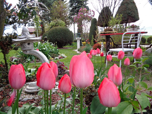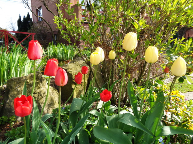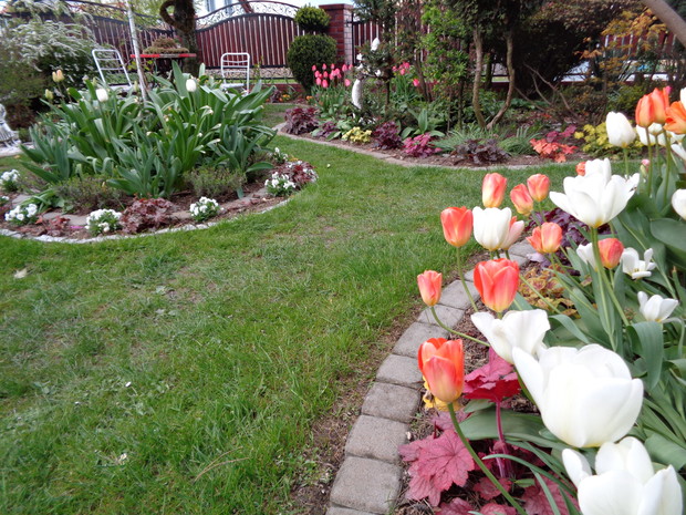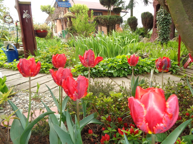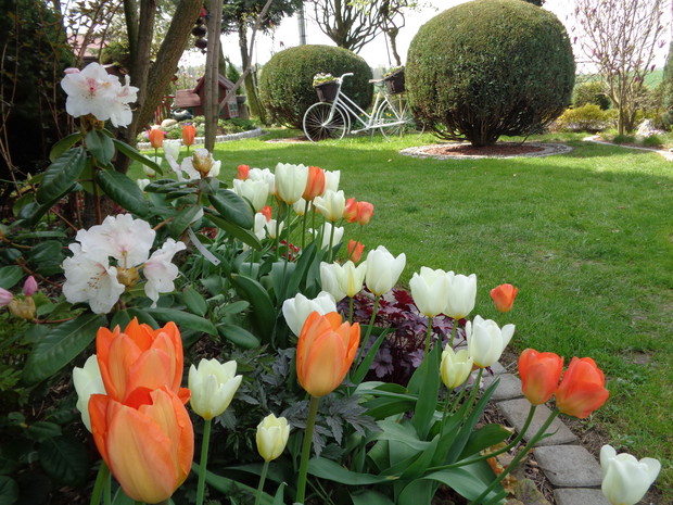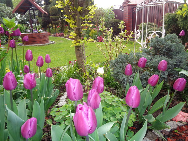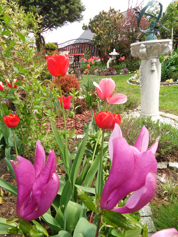 Tą moją wiosnę uwielbiam za jej piękną zieleń, traw, pierwsze kwiaty, śpiew ptaków, słońce za oknem budzące mnie. Kwiaty to moja wielka miłość :) a przede wszystkim tulipany trzeba się do nich uśmiechać, a one odbierają nasze nastroje i odwdzięczają wspaniałym wzrostem...:) Trudno mi wyobrazić sobie nasz ogród bez tych pięknych kwiatów... :)