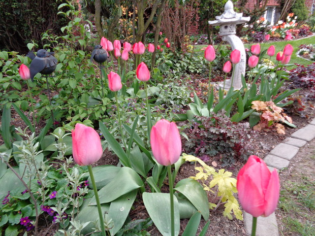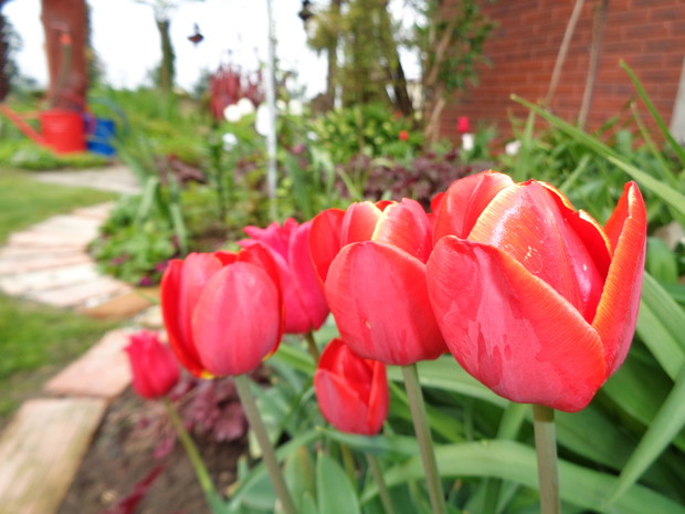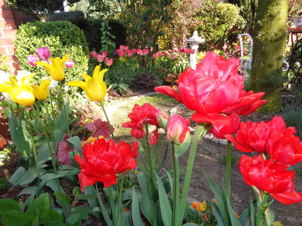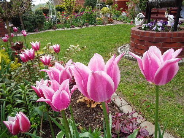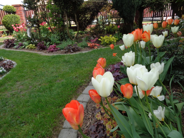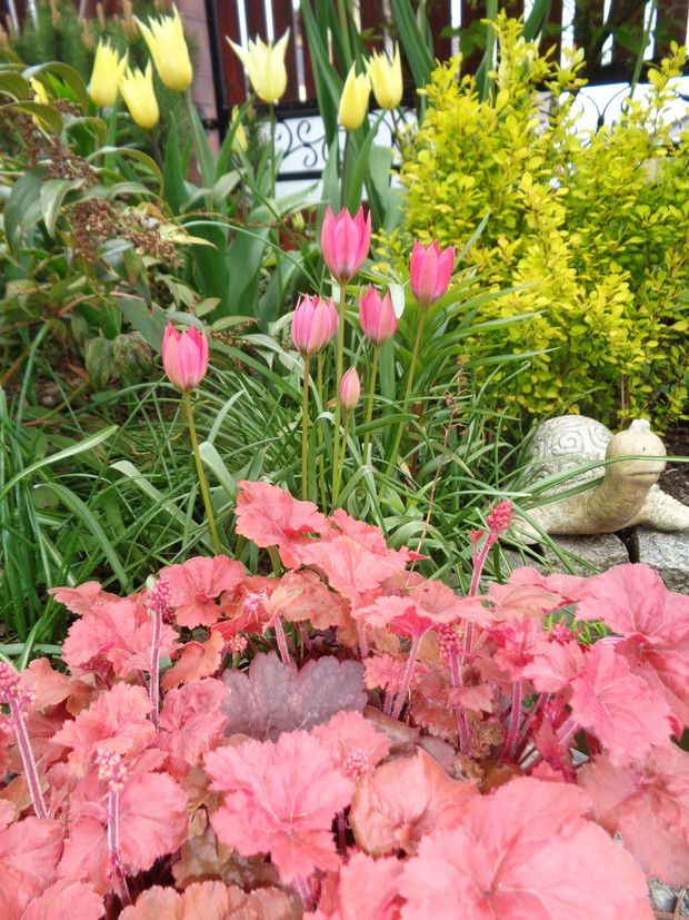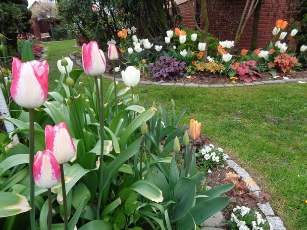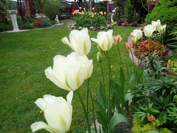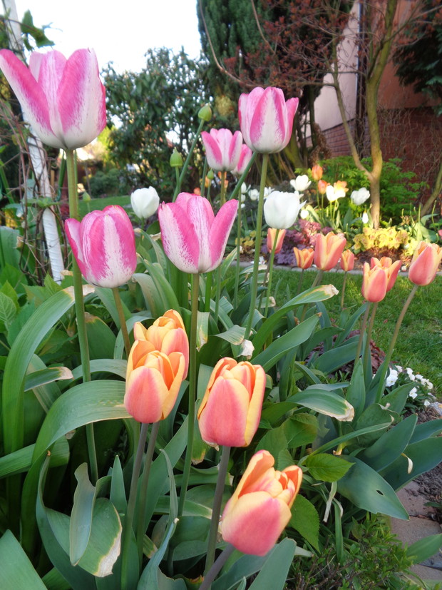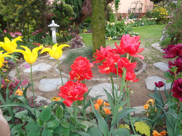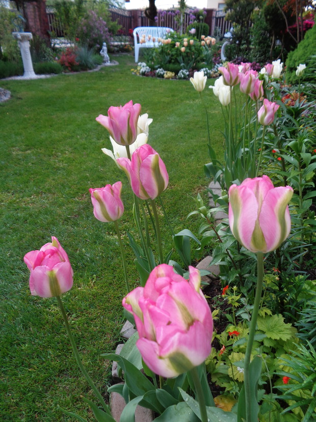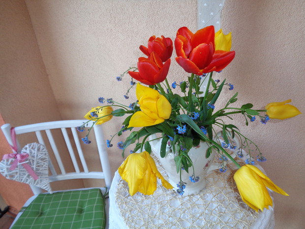 Tą moją wiosnę uwielbiam za jej piękną zieleń, traw, pierwsze kwiaty, śpiew ptaków, słońce za oknem budzące mnie. Kwiaty to moja wielka miłość :) a przede wszystkim tulipany trzeba się do nich uśmiechać, a one odbierają nasze nastroje i odwdzięczają wspaniałym wzrostem...:) Trudno mi wyobrazić sobie nasz ogród bez tych pięknych kwiatów... :)