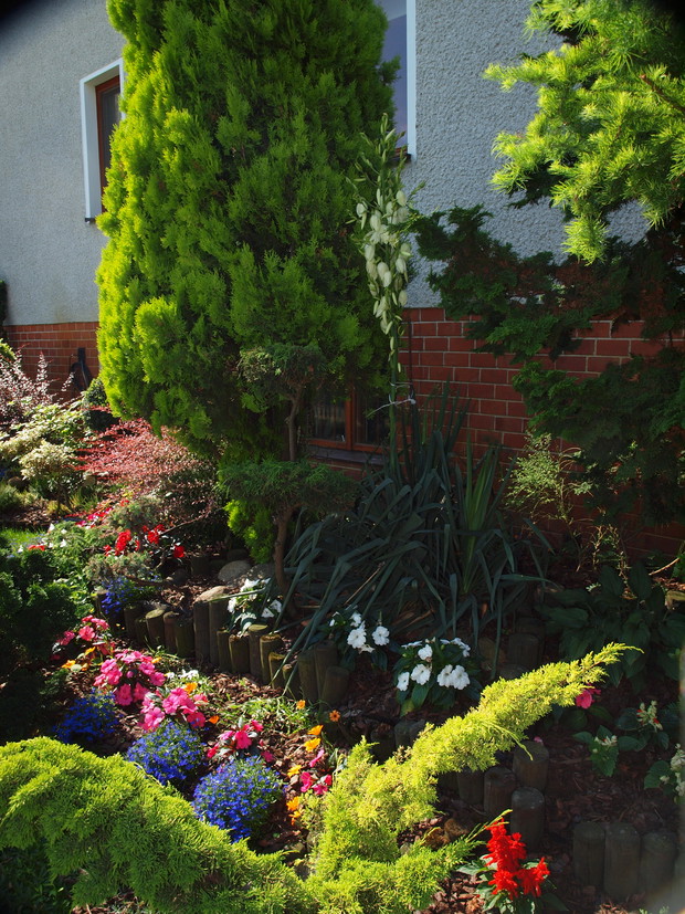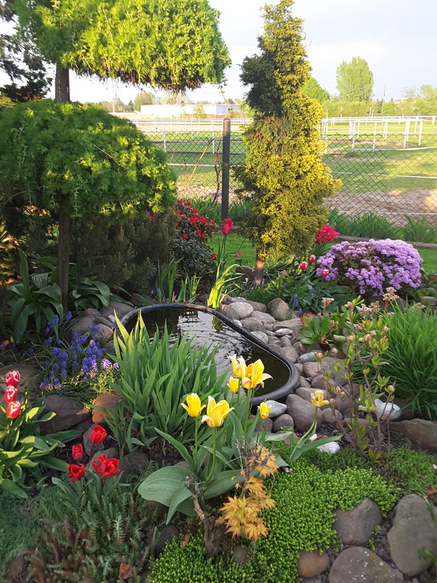 WITAM SERDECZNIE !!! NA ZDJĘCIACH PRZEDSTAWIŁAM SWÓJ MAGICZNY ZIELONY ZAKĄTEK!!! JEST TU TROSZKĘ SZUMU DRZEW, ŚPIEWU PTAKÓW ORAZ ODGŁOSY USPAKAJAJĄCEGO GÓRSKIEGO ŹRÓDEŁKA A OD NIEDAWNA ZAGOŚCIŁA TU MAŁA CZARNA ZWINNA MRÓWECZKA!!! MÓJ OGRÓD TO MOJA WIELKA PASJA I MIEJSCE WYTCHNIENIA OD CODZIENNOŚCI PRZEDE WSZYSTKIM DLA MOICH BLISKICH!!! TU REALIZUJE SWOJE POMYSŁY !! CIĄGLE COŚ ZMIENIAM DOSADZAM, ROZSADZAM I CIESZĘ SIĘ TYM OGRÓDKIEM BARDZO!!! LECIWE JUŻ DRZEWA PRÓBUJE OŻYWIĆ DODAJĄC NOWYCH KOLOROWYCH ROŚLIN I ODMIAN ZAKŁADAJĄC CORAZ TO NOWE RABATY I ZAKŁADAJĄC CO I RAZ JAKIŚ NOWY ZAKĄTEK, KTÓRY NARZUCI PEWNĄ DOZĘ TAJEMNICY!!! OGRÓD CHOĆ NIEWIELKI ZAWSZE COŚ W NIM SIĘ DZIEJE I ZAWSZE POTRAFI MNIE CZYMŚ ZASKOCZYĆ!!! W ZIMĘ STARE DRZEWA I BRZOZY POKRYWAJĄ SIĘ PIĘKNYM BIAŁYM SZRONEM I PUCHEM PTAKI PRZYLATUJĄ DO KARMIKA NA JEDZENIE; WIOSNĄ, KTÓREJ NIGDY NIE MOGĘ SIĘ JUŻ DOCZEKAĆ ZACZYNAJĄ SIĘ POJAWIAĆ PIERWSZE KWIATY, POWOLI WSZYSTKO BUDZI SIĘ DO ŻYCIA I TULIPANY ZACZYNAJĄ PRZYGOTOWYWAĆ SIĘ DO KOLOROWEGO TAŃCA W MAJU SWOJĄ SZATĘ ODSŁANIAJĄ RÓŻĄNECZNIKI - RODODENDRONY I AZALIE I W TYM CZASIE OGRÓD U MNIE WYGLĄDA NAJPIĘKNIEJ, POTEM POJAWIAJĄ SIĘ RÓŻE,PELARGONIE , SZAŁWIE, CLEMATISY, HORTENSJE JEŻÓWKI, PYSZNOGŁÓWKI OSTRÓŻKI, TYGRYSÓWKI, MIECZYKI I TAK PRZEZ CAŁĄ JESIEŃ!!! TAK WIĘC DZIEJE SIĘ!!! ZAPRASZAM SERDECZNIE DO OBEJRZENIA ZDJĘĆ " U MRÓWECZKI W OGRÓDKU"!!
