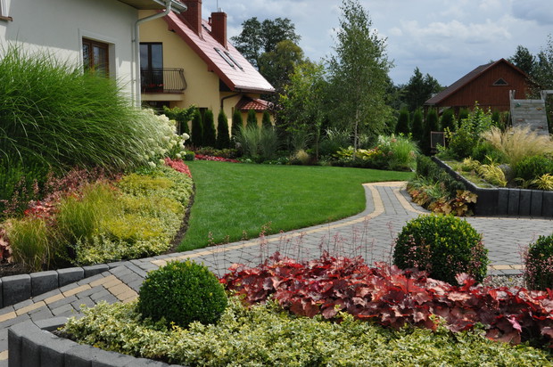 Kiedy cztery lata temu wprowadzaliśmy się do nowego domu, myśl o ogrodzie ograniczała się do thuj wzdłuż płotu i trawnika. Jednak w trakcie zimy zakiełkowała myśl o 'jakimś' ogrodzie. Nie miałam pojęcia od czego zacząć, dlatego zaczęłam czytać, oglądać. Pierwsze zakupy były zupełnie nie przemyślane, spontaniczne, a efekt który uzyskałam odbiegał od moich wyobrażeń. Zimą zgłosiłam się do profesjonalisty po projekt, miało być formalnie ale z nutką nowoczesności.Ogród jest mały, z założenia miał być podzielony na trzy części. Największa ozdobna, mniejsza ozdobno-wypoczynkowa z pergolą miejscem do siedzenia i ogniskiem oraz sporą częścią przeznaczoną na plac zabaw dla naszych synów. Z początkiem wiosny w 2012 zaczęłam swoja prawdziwą przygodę z ogrodem. Miałam projekt i ogromną motywację, wyznaczałam rabaty, sadziłam szkielet. Szybko jednak okazało się że projekt ulegnie dużej modyfikacji bo moje preferencję się zmieniły.Dlatego zaczęłam wprowadzać zmiany. Chciałam by ogród się zmieniał, tętnił życiem i by można było zauważyć w nim zmieniające się pory roku. Dlatego do zimozielonych świerków, jodeł, formowanych bukszpanów, cisów dołączyłam mnóstwo bylin, traw ozdobnych. Wiosną na moich małych rabatach kwitnie tysiące cebul - krokusy, szafirki,tulipany, irysy, korony cesarskie, czosnki. Posadziłam je tak by tworzyły barwne plamy. Gdy przekwitną ich miejsce zajmują głównie trawy, byliny i jednoroczne begonie. Latem na bylinowych rabatach królują głównie orliki,dzwonki, ostróżki, naparstnice, pysznogłówki, krwawnik. W tym roku moje serce skradły kosmosy więc zamieszkały na rabatach i liczę na miłość wzajemną. Mam też Kilka krzaków angielskich róż otoczonych lawendą oraz róże pienne, które z powodzeniem zimowały u mnie 3 zimę, dzięki przyginaniu do ziemi i okrywaniu. W pełni lata swoimi ogromnymi kwiatami zachwycają mnie hortensje, wdzięczne jeżówki, werbeny patagońskie i trawy. W tym roku zaczęłam tworzyć też rabatę różano-bylinową przed ogrodzeniem. Ogród stał się moją odskocznią, pasją i radością