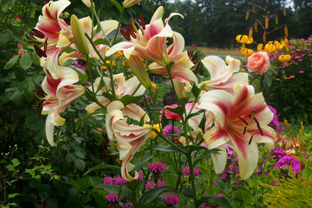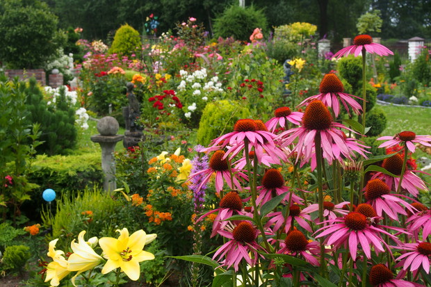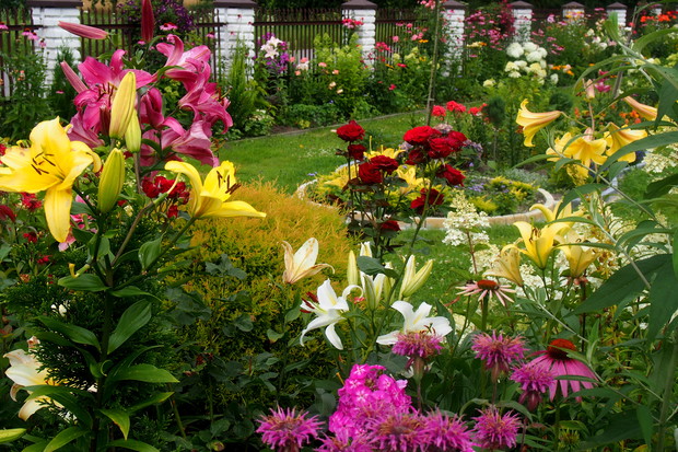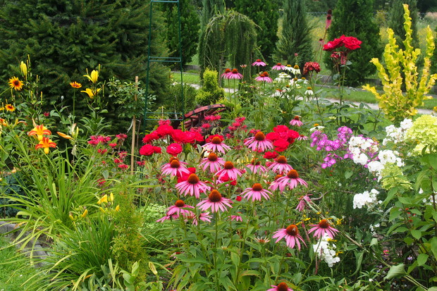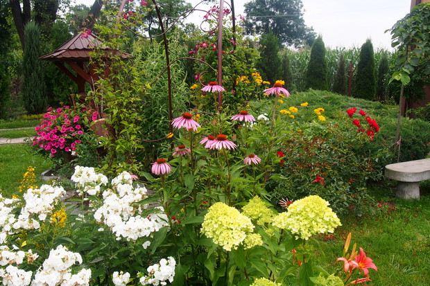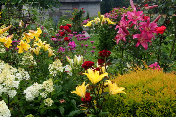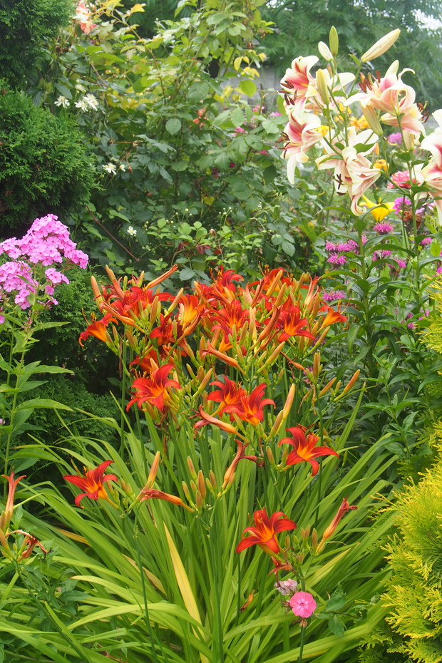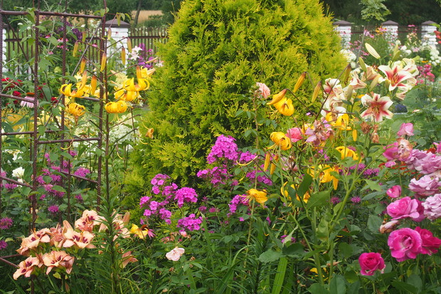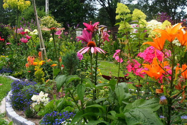 Lipiec w moim ogrodzie jest bardzo kolorowy i pachnący. Część kwiatów już przekwitła ale następne zajmują ich miejsca i cieszą nasze oczy .