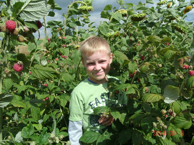 W swoim jagodniku mam 3 odmiany malin ale tylko Polana daje tak obfite plony. Odmiana ta najlepiej owocuje na jednorocznych pędach. Pędy dwuletnie również owocują ale mniej obficie. Owoce można zbierać w lipcu z pędów dwuletnich ale największy wysyp zaczyna się na pędach jednorocznych w połowie sierpnia i trwa aż do przymrozków. Uprawa malin nie jest skomplikowana i pracochłonna. Wystarczy zciąć maliny późną jesienią - gdy już przestaną owocować lub wczesną wiosną a później to już tylko czekać na wysokie plony. Jest to odmiana szybko rosnąca i dość ekspansywna - w krótkim czasie zarasta dość duży teren. Warto ją sadzić w ogródkach by cieszyć się słodkimi i aromatycznymi owocami długi czas. Polana nie potrzebuje podpór ale ja wolałam wsadzić ją pomiędzy drutami przywiązanymi do palików - aby się tak bardzo nie przechylały w stronę warzywnika. Te kilka sadzonek wystarczyło aby w roku następnym stworzyć malinowy gaj. Teraz część pędów muszę wyrywać i niszczyć bo co za dużo to niezdrowo.