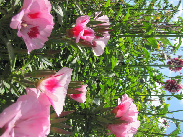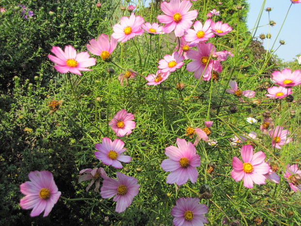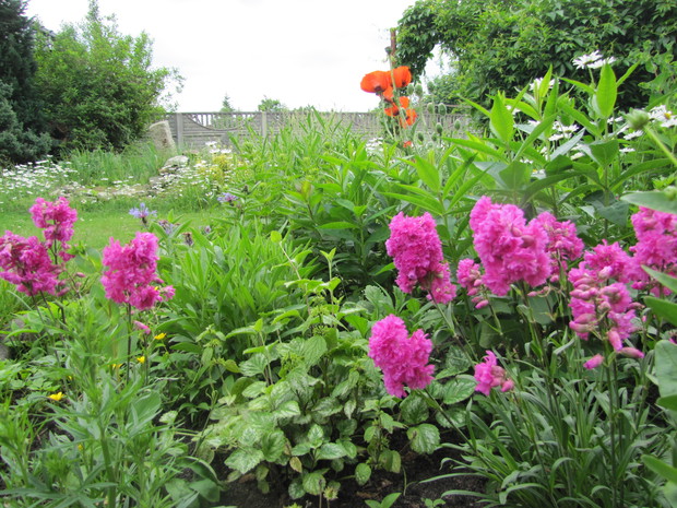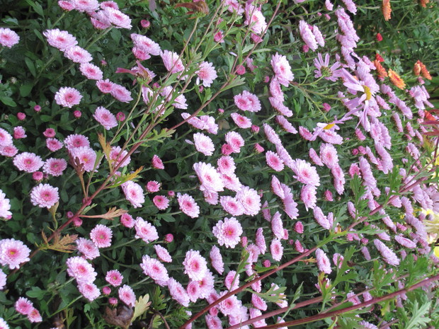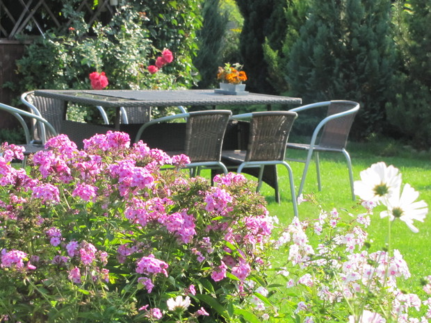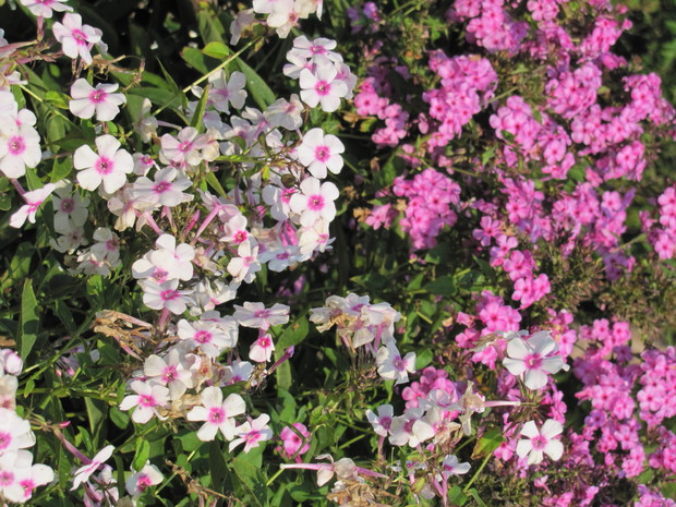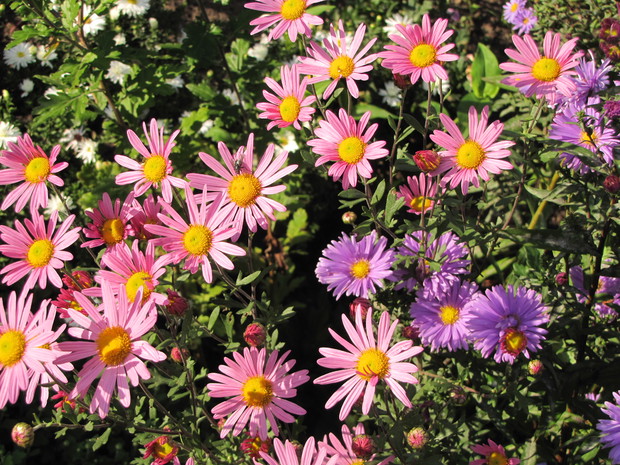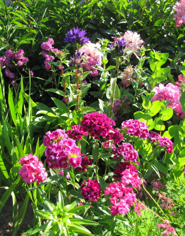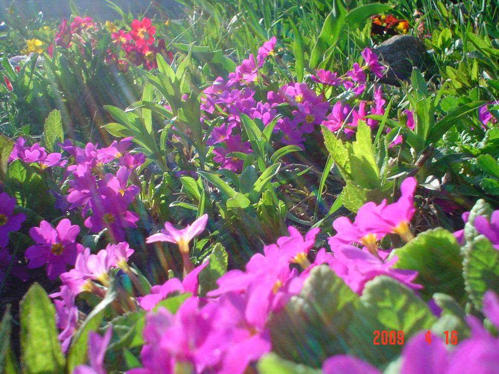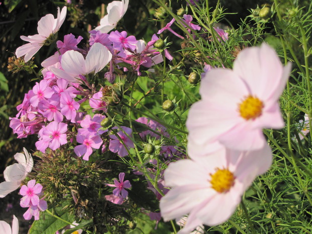 Kwiaty w moim ogrodzie są w całej palecie barw. W odcieniach różu - różne gatunki, odmiany, byliny i kwiaty jednoroczne "różowieją" w moim ogrodzie od wiosny do jesieni. Wiosna z pierwiosnkami , firletkami itp. dalej letnie floksy, kosmosy, róże itd. do początku jesiennych dalii i astrów, aż do późnych chryzantem.