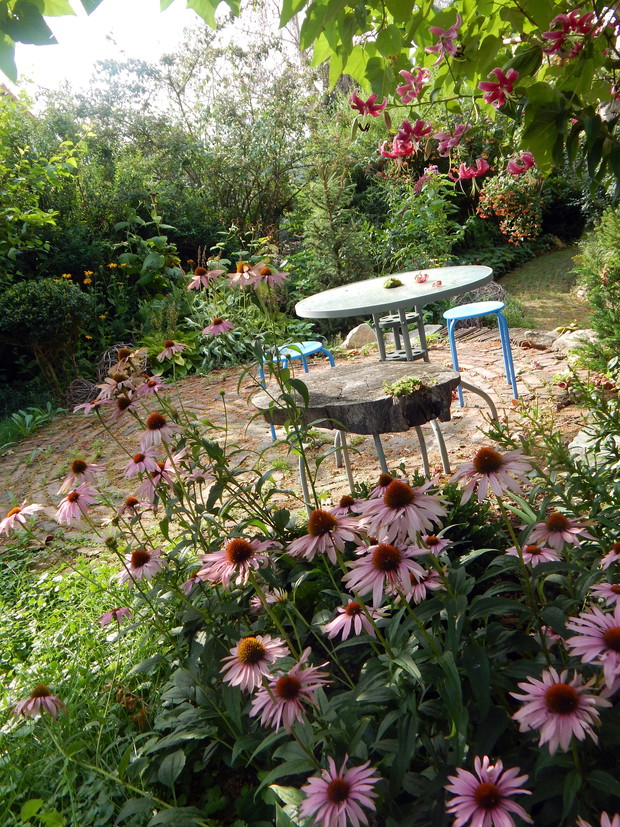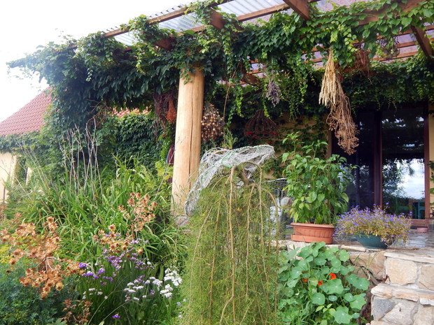 Zapraszam do ogródka jak mawiała moja babcia , do ogrodu który jest w okresie letnim miejscem spotkan z rodzina i przyjaciółmi urzadzamy tu pikniki, cwiczymy joge na trawie. Ma on juz, a moze dopiero 20 lat i wciaz sie zmienia. Praca w ogrodzie daje wytchnienie, a rosliny odwdzieczaja sie za poswiecony im czas i serce. Zyjemy w zgodzie z natura ,uprawiamy ekologiczne warzywa , a sadzac miododajne rosliny i tworzac zaciszne kaciki zapraszamy owady,ptaki i małe zwierzeta. Na stałe mieszkaja zaskrońce jaszczurki,ruda wiewiórka odwiedzaja nas dziecioły Nie ma tu wymukanego trawnika jest taki dziko rosnacy ze stokrotkami krwawnikem ,nikt tu nie tępi mniszka który jest doskonały do sałatek i na syrop. Ogród jak najbardziej użytkowy miedzy ozdobnymi roslinami rosna te jadalne, ogród do którego mozna wyjsc odpoczac i zebrac rosliny na obiad.