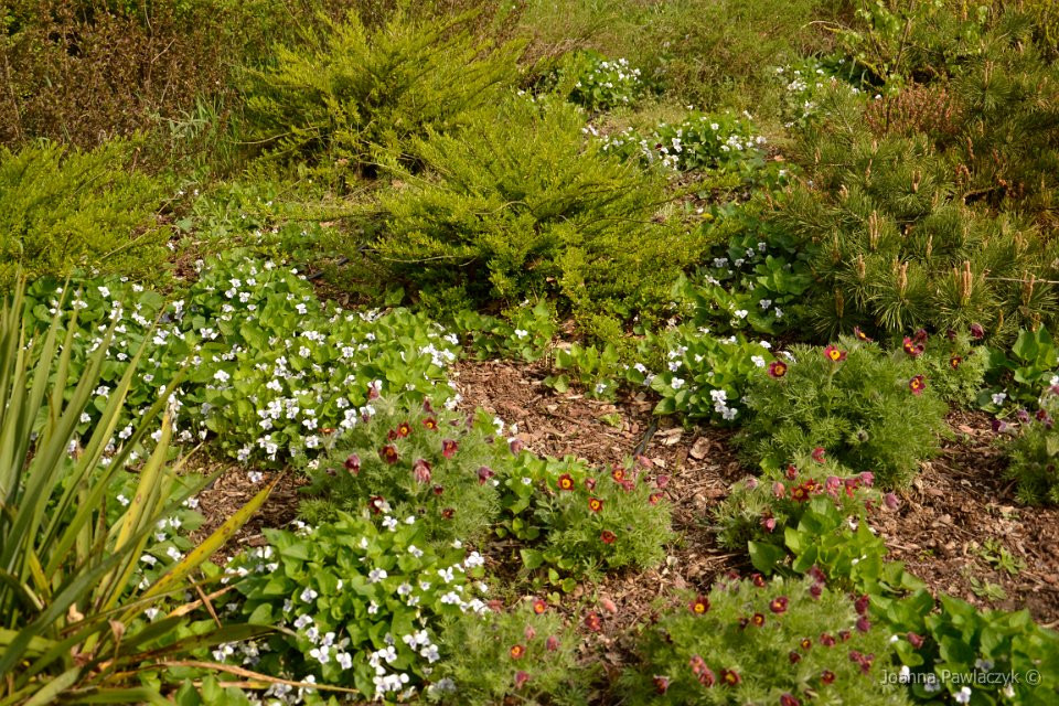 Ogród w zbliżeniu. Jest to tylko część roślin jakie w nim rosną. Niestety niektórych jeszcze nie znam. Jest w nim bardzo dużo irysów, a wiosną sasanek. co tydzień zmienia on swój kolor. Chyba każdy ogród jest najpiękniejszy wiosną, kiedy kwitną bzy, tulipany i sasanki. Część ogrodu zajmują trway i wrzosy.