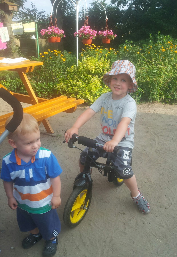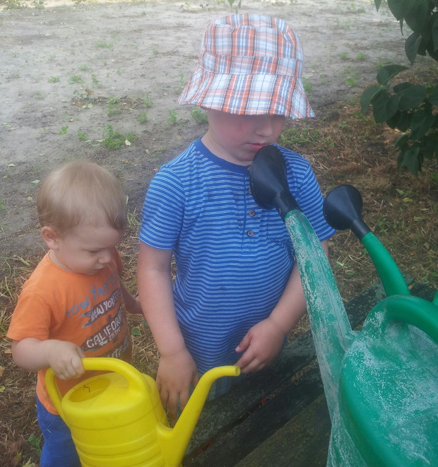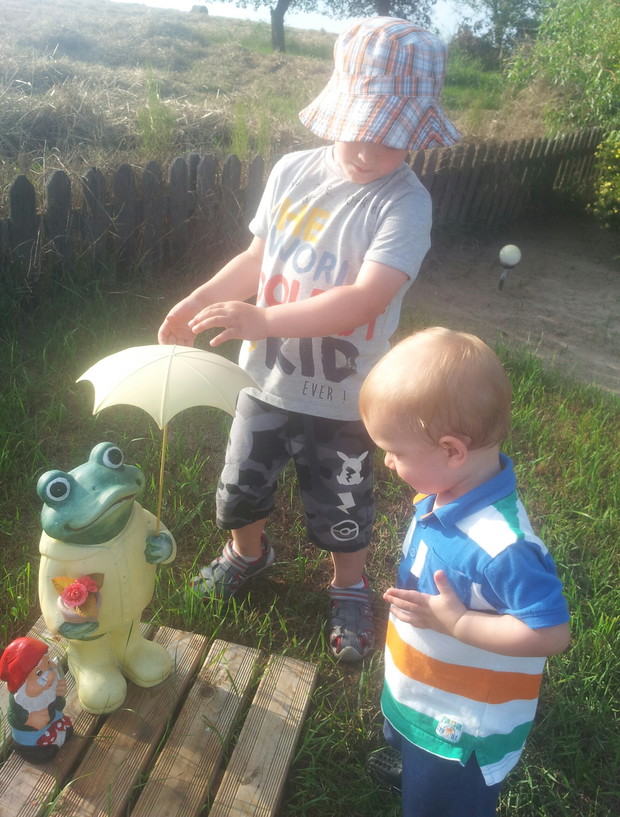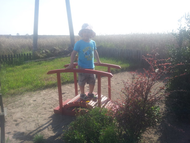 Wakacje dla naszych wnukow to byla sama radosc-czuly sie u dziadkow swobodnie I bezpiecznie.Mieszkamy z dala od Wsi gdzie jest cisza I spokoj.Szkoda tylko, ze tak krotko mogli byc.Ale beda mieli co wspominac.Mamy nadzieje ze beda nas czesciej odwiedzac.Najwieksza radosc sprawiala zabawa w ogrodzie-podlewanie kwiatkow I chodzenie po mostku.