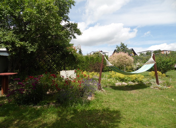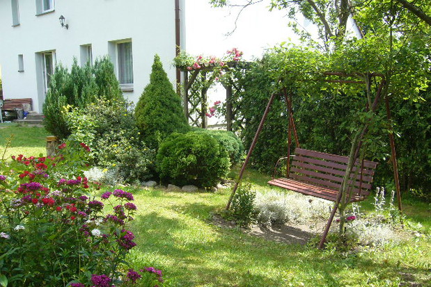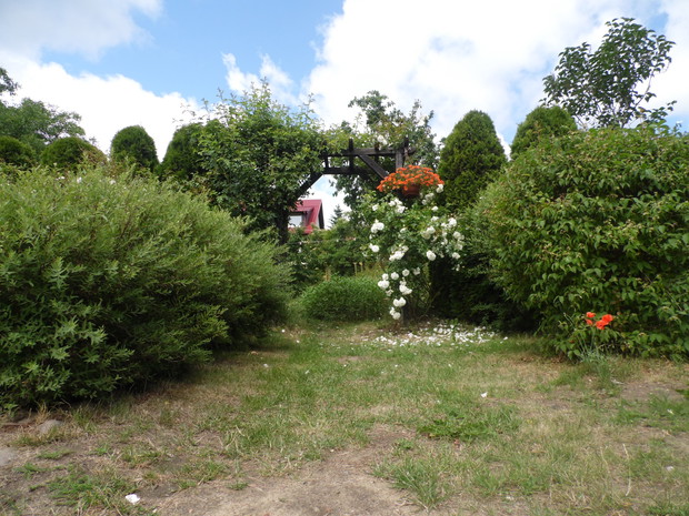Zdjęcia przedstawiają mój ogród. Założyłam go kilka lat temu. Zdjęcia przedstawiają ogród przydomowy - zarówno ogród "za domem", jak i ten, który prezentuje się przechodniom. Nie jest on może zbyt duży,ale idealny do błogiego odpoczynku na łonie natury ;) Często wraz z rodziną, przyjaciółmi oraz znajomymi, relaksujemy się leżąc na hamaku, bujając się na huśtawce bądź po prostu leżąc na kocu i czytając książkę. Ponadto, gdy tylko mam chwilkę wolnego czasu, nie tylko poświęcam ją na odpoczynek,ale także relaksuje się robiąc drobne porządki oraz pieląc- to zdecydowanie moje hobby. Zaraziłam tym zajęciem także moje córki oraz syna, którzy zawsze z chęcią mi pomagają w takich pracach. Często także spędzamy czas grillując ze znajomymi, którzy też są zachwyceni ogrodem. Jak widać nie tylko spędzać można w nim czas leniuchują, ale także można całkiem sprawnie zagrać w siatkówkę, więc jest to ulubione miejsce moich dzieci - fanów tej dyscypliny. Jest to nasze ukochane miejsce na ziemi. ;)