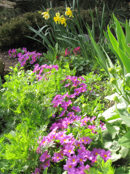 Wiosenne rabaty u progu kwietnia 2016 roku. W pierwszym tygodniu kwietnia w ogrodzie jest już bardzo kolorowo. Kilka ciepłych dni i opady deszczu spowodowały, że w oczach wszystko się zieleni i nabiera kolorów. Kwitną szachownice kratkowane, żonkile, hiacynty, szafirki, pierwiosnki, ziarnopłon, bratki, stokrotki, forsycja i niektóre drzewa owocowe. Wiosna w pełni !!!