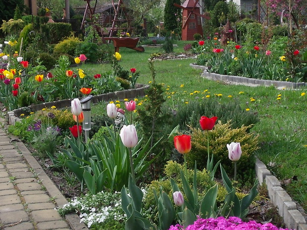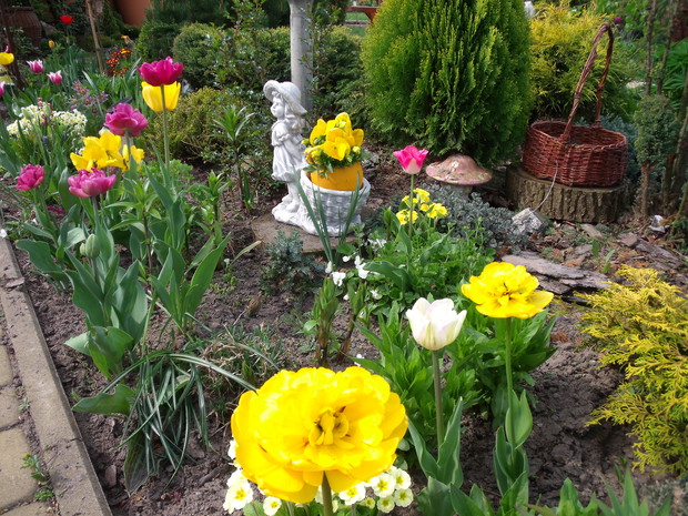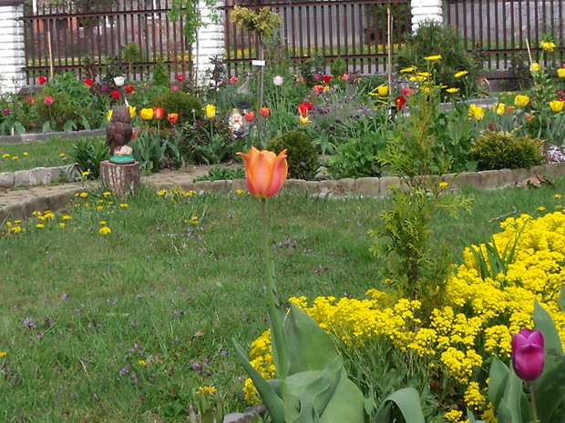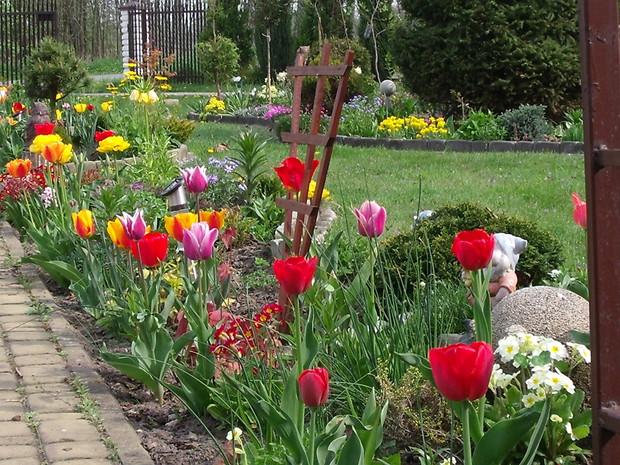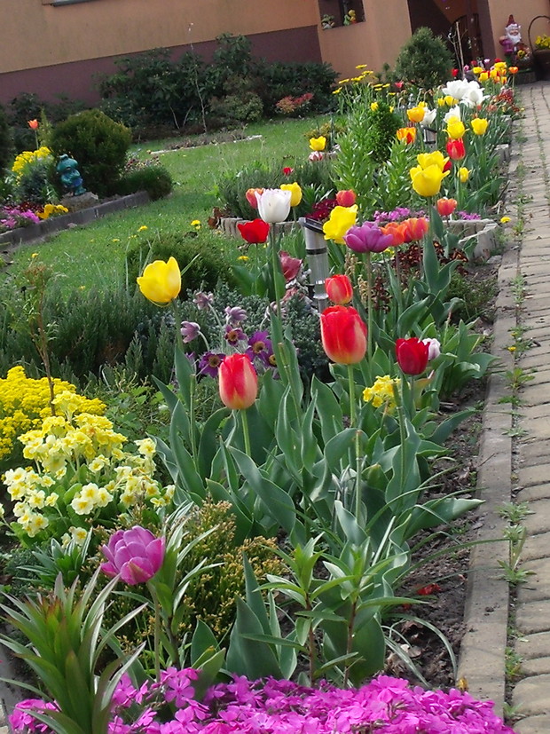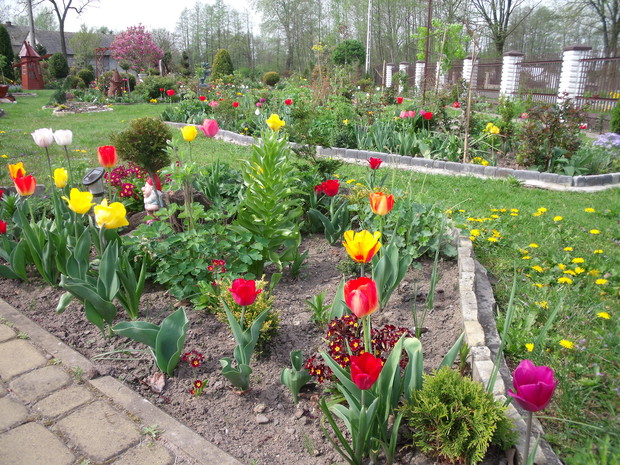 Jak co roku wiosną w moim ogrodzie królują głównie wielokolorowe tulipany i żonkile. Aż miło popatrzeć na barwne grządki po długiej przerwie. .