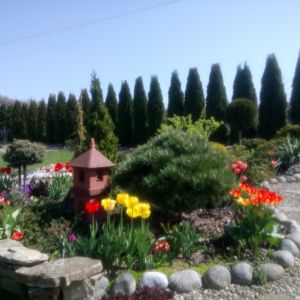 W moim ogrodzie czuje się jak rybka w wodzie.Jest dla mnie jak mój drugi dom.Jest kolorowy od wiosny do jesieni ,zmienia się jak kameleon dzięki kwiatom których mam sporo .Kocham pracę w nim ,ona sprawa mi dużo przyjemności a także obcowanie z naturą i śpiew ptaków o poranku.Jestem z niego bardzo dumna ,tworze go już 10 lat.To moja pasja którą rozwijam i będe rozwijać.