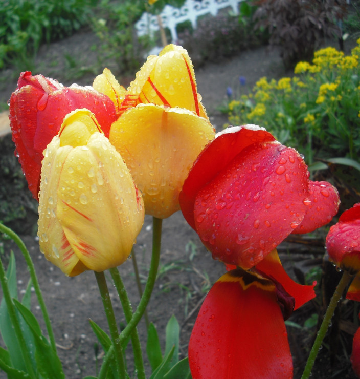 W tym roku wiosna była kapryśna,padał śnieg,było zimno ale roślinki przetrwały-zakwitły pięknie.W moim małym przydomowym ogródku jest kolorowo-czekam teraz na inne kwiatki,które zaczynają kwitnąć-kalina zaczyna pokazywać swoje białe pomponiki.Będą mieczyki,lilie,liliowce,malwy,orginie,orliki,oraz różne kwiatki jednoroczne.