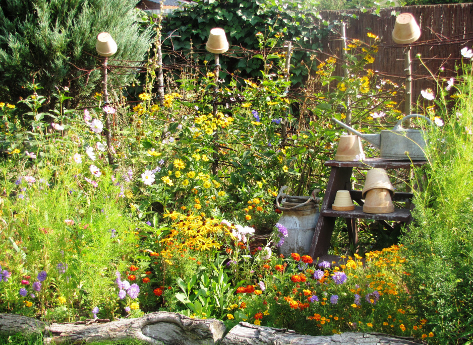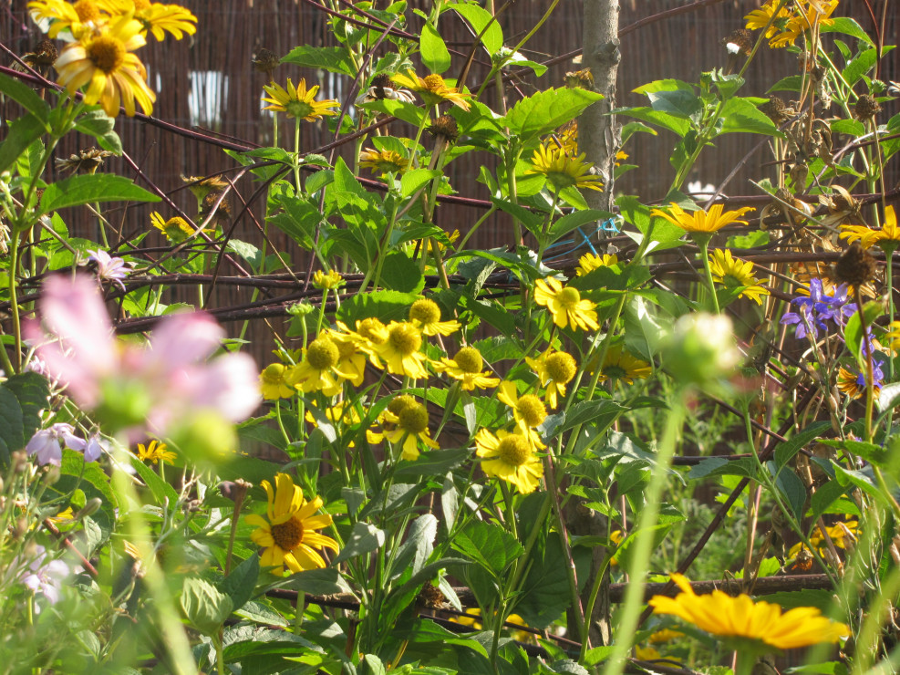W ogrodzie pomimo jesieni nadal jest kolorowo. Bujnie kwitną aksamitki, dzielżany,cynie, astry, kosmosy niezawodne słoneczniki. Również dalie nabierają soczystych kolorów. Po ostatnich ulewnych deszczach, kwiaty po długich upałach i suszach budzą się do ponownego kwitnienia.