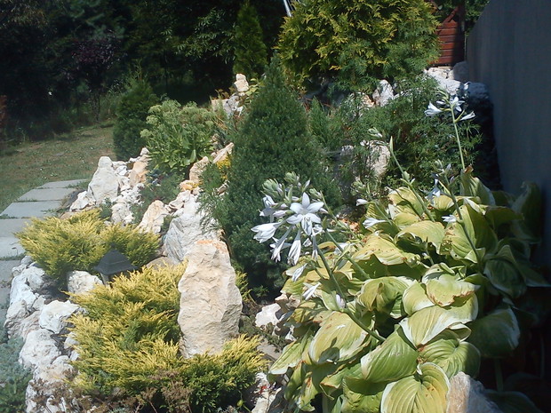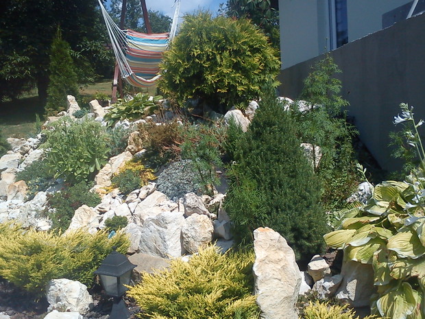 Za datę powstania naszego wspólnego ogrodu można przyjąć rok 1998.Wtedy wraz z mężem zaczęliśmy sadzić pierwsze rośliny, chcąc stworzyć piękny i niepowtarzalny zakątek ,do którego będą chcieli przyjeżdżać nasi znajomi.Centralnym sercem jest skarpa, która jest oczkiem w głowie mojego męża.Cały czas ewoluuje,wzbogacając się o nowe rośliny .Jednakże moją chlubą i miejscem o które szczególnie dbam ja, jest milin oraz miejsce z tawułami i magnolią , która zakwita przepięknymi białymi kwiatami.
