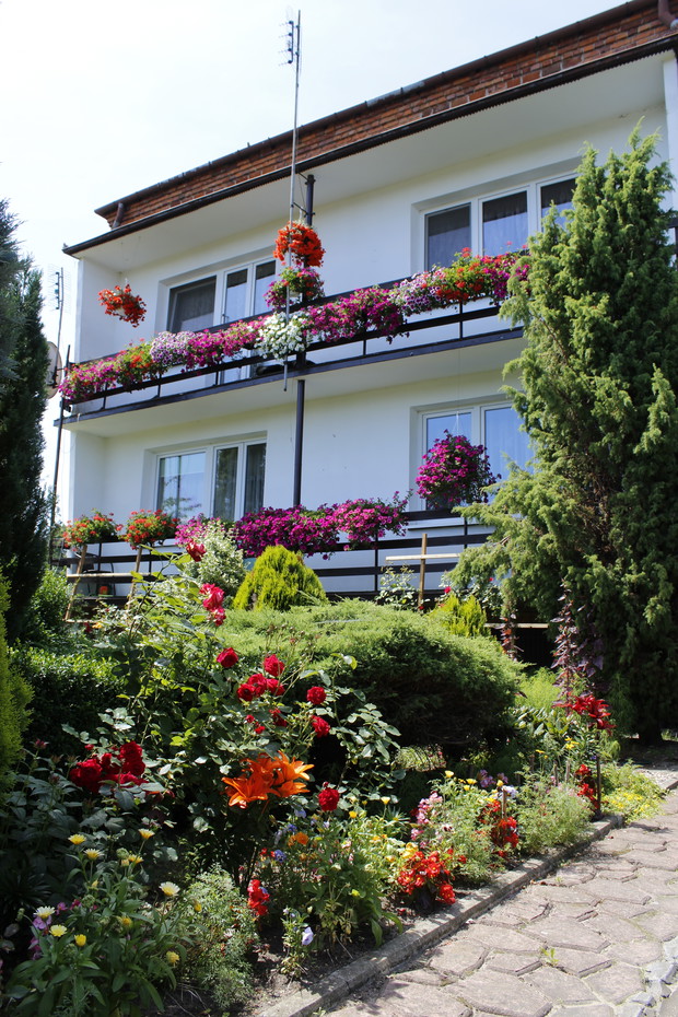 Wystarczy zamknąć oczy, zrobić głęboki wdech i wyciągnąć rękę, by dotknąć Bramy Triumfalnej owitej wiciokrzewem, różami, wiodącej do Tajemniczego Ogrodu, tuż na skraju zapomnianego podwórka… Widok jest imponujący. Oślepione lipcowym słońcem oczy nie umieją podpowiedzieć, czy kierować się wprost na pachnący kawą Dębowy Taras wyściełany miękkimi poduszkami w kolorze miodu, czy podążyć na połyskujące szafirowo Lawendowe Pole, czy też zmierzać przestrzeń poddając się wirowi Perłowej Rzeki i udać się w zupełnie nieznane rewiry podwórza Na ratunek przybywa wszechobecna łowna kotka, łasząc się i mrucząc prowadzi do Oazy. Staje nad jej brzegiem i przygląda się niecodziennemu zjawisku. Właśnie dziś postanowiła zamieszkać na tafli wody najpiękniejsza z księżniczek. Delikatna jak puch jej wysokość lilia wodna. Zatrzyma się jedynie na 5 dni i zniknie tak nagle jak się pojawiła-zaklęta w pąku jak w złotej karocy. Cóż począć beż księżniczki? Może udać się na masaż jałowcowo-tujowy, który koi zmysły?Ale Ogród Cyniczny właśnie wytrysnął jak fontanna całym mnóstwem owadów i motyli, bo w zagon wbiegła Diana – bogini łowów, która zdecydowała się przybrać postać zabawnej suczki Świetnie na samopoczucie działają czerwone jak pożar pomidory, las pnącej fasoli, gąszcz marchewki, pietruszki i buraczków, zakole szpinaku i Wyspa Ziołowa ze słodką melisą i pieprzową miętą, której listek trzeba koniecznie urwać, by za chwilę w pełni rozkoszować się wodą z miodem i cytryną na zacisznym tarasie