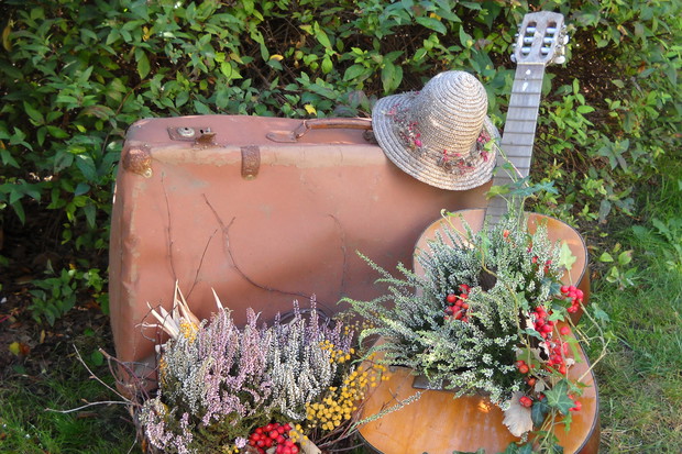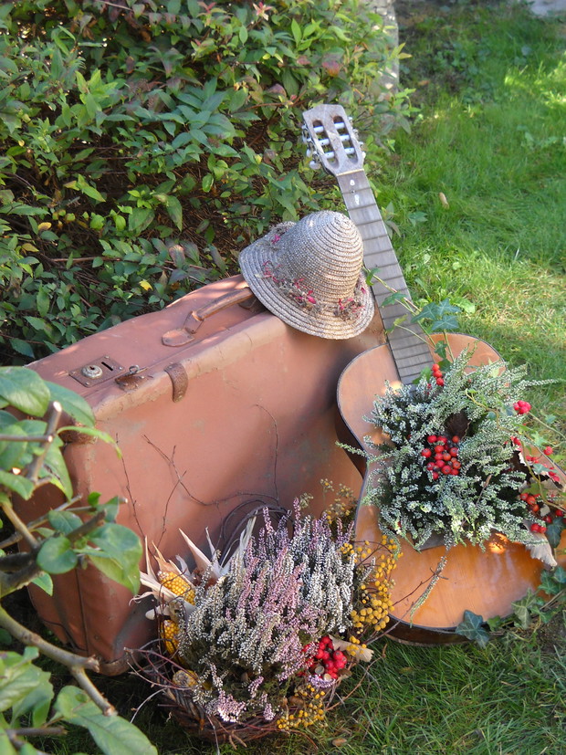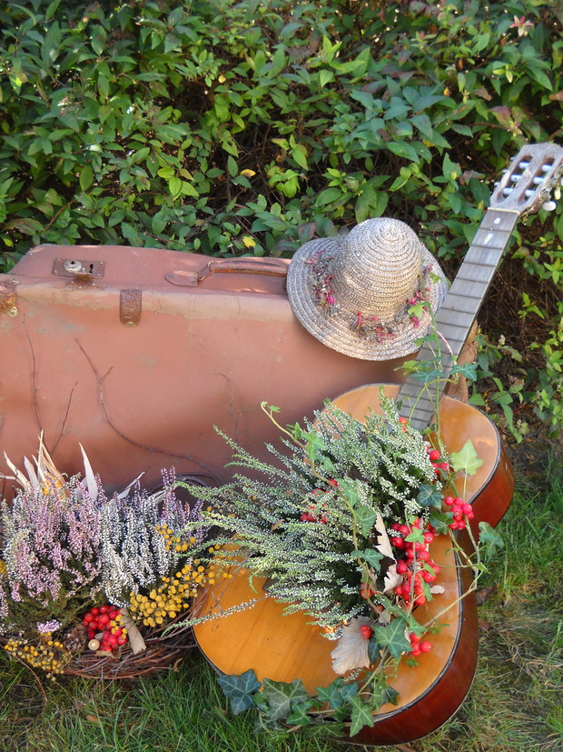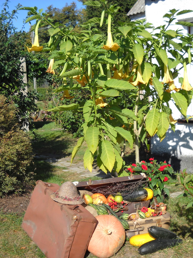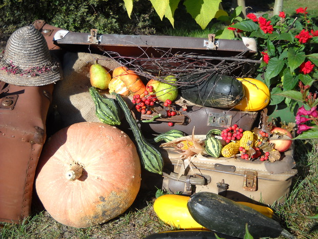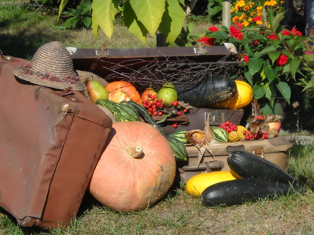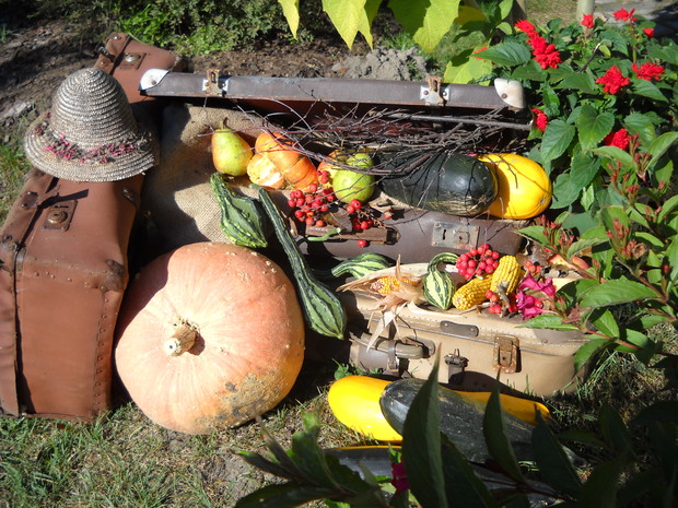 Tak oto pożegnałam moimi dekoracjami lato w ogrodzie.W zamkniętych oto walizkach zostało lato...a tuż obok wyłania się złota jesień,pełna kolorów i darów z ogrodu i sadu.............................................................................................................................................................................................