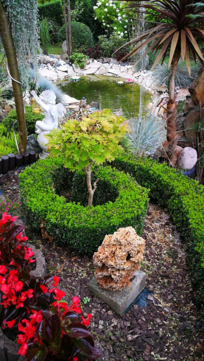 "Zielone barwy mojego ogrodu" Mój ogród ma około 30 lat. Kocham drzewa, kwiaty i wszystkie rośliny. Jako dziecko wracając ze szkoły przychodziłam do domu z uplecionym wiankiem z kwiatów i liści na głowie. Odmładzam go przez przycinanie i dosadzanie nowych roślin. Oczko wodne to moje "oczko w głowie". Praca w ogrodzie to dla mnie relaks i odpoczynek. Teraz wiem, że kwiaty i krzewy budzą i mnie do życia. Wszystko wykonuję własnymi rękami ale rodzinka też mi pomaga. Cieszę się, że jest taka gazeta że mogę to pokazać.