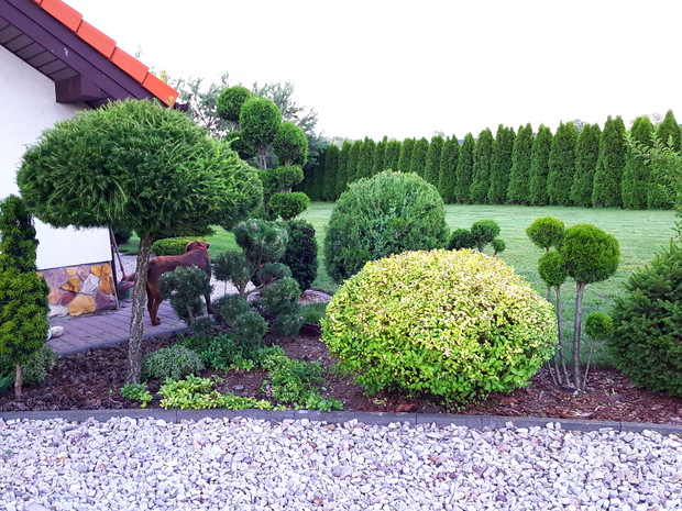 W życiu boję się szarości... ludzi którzy nie mają żadnej pasji... nie podejmują próby jej odnalezienia... Ja swoją odnalazłam :) jest zielona i pochłania moj czas prawie całkowicie... Uwielbiam to :) Mój ogród powstał 8 lat temu i od tego czasu sukcesywnie jest pielęgnowany i ulepszany. Najbardziej lubię iglaki i krzewy, kolorowe kwiaty są piękne ale nie mogę się do nich przekonać :) ...jednakże wciąż coś zmieniam... nie wykluczone iż wkrótce będzie tam bardziej kolorowo :) Wszystkoe prace w ogrodzie wykonuję samodzielnie, strzyżenie, pielęgnowanie itp. To sprawia mi największą radość... Nieważne czy wokół siebie mamy małą działkową rabatkę czy wielki ogród ... oddając się z pasją wszelkim pracom ogrodowym można w każdy skrawek ziemi wnieść magię i piękno :) Zarówno tradycyjne krzewy i iglaki można pięknie uformować i wyeksponować... moja nauka wciąż trwa...