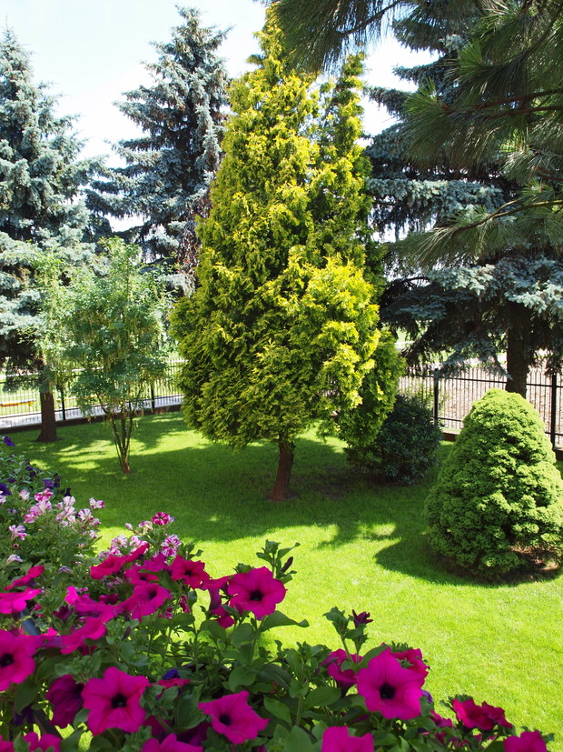 WITAM SERDECZNIE!!! MÓJ OGRÓD TO MOJE HOBBY!!!!!KOCHAM ZIELEŃ I JEJ PIELĘGNACJA SPRAWIA MI WIELKĄ PRZYJEMNOŚĆ !!! USYTUOWANY JEST NA WARSZAWSKIM OKĘCIU I SKŁADA SIĘ Z DWÓCH CZĘŚCI: PIERWSZA CZĘŚĆ ZAŁOŻONA ZOSTAŁA JESZCZE PRZEZ MOJEGO DZIADKA I JEST NAJSTARSZYM FRAGMENTEM OGRODU - ZNAJDUJA SIĘ TU RÓŻE I PIĘKNY OKAZ RÓŻOWEJ HORTENSJI KTÓRA MA OK. 30 LAT A TAKŻĘ MAGNOLIA I GLICYNIA. DRUGĄ CZĘŚĆ ZAŁÓZYLI MOI RODZICE - TUTAJ DOMINUJĄ PONAD 30 LETNIE IGLAKI KTÓRE DAJĄ CIEŃ W UPALNE DNI ORAZ ZOZLICZNE RÓŻANECZNIKI. JA OBIE TE CZĘŚCI POŁACZYŁAM. WSPÓLNIE Z RODZINĄ SYSTEMATYCZNIE CIAGLĘ COŚ ZMIENIALIŚMY ŻEBY BYŁO CORAZ PIĘKNIEJ I TAK WSPÓLNYMI SIŁAMI ZBUDOWALIŚMY OCZKO WODNE Z MAŁĄ GROTA, KTÓRA JEST SCHRONIENIEM DLA KILKU GATUNKÓW RYB, POTEM PRZYSZEDŁ CZAS NA ROZBUDOWE INNYCH CZĘSCI OGRODU W TYM NA POSTAWIENIE MAŁEJ ALTANKI. I TAK POWOLI WŁASNYMI SIŁAMI REALIZUJEMY RÓŻNE NASZE POMYSŁY BY OGRÓD CIESZYŁY NASZE OCZY I STAWAŁ SIĘ CORAZ BARDZIEJ TAJEMNICZY I RÓŻNORODNY!!! DLA NAS WSZYTKICH OGRÓD JEST NASZYM AZYLEM I MIEJSCEM WYTCHNIENIA!! TAM WYPOCZYWAMY PRZY ZAPACHACH RÓŻ A W MAJU CIESZĄ NAS PIĘKNE BARWY ROZLICZNYCH RÓŻANECZNIKÓW, ZŁOTOKAPU I GLICYNII!!! NASZ OGRÓD TO MIEJSCE GDZIE CHETNIE SPĘDZAMY CZAS Z NAJBLIŻSZYMI!!!!!!! Z POZDROWIENIAMI MAGDA