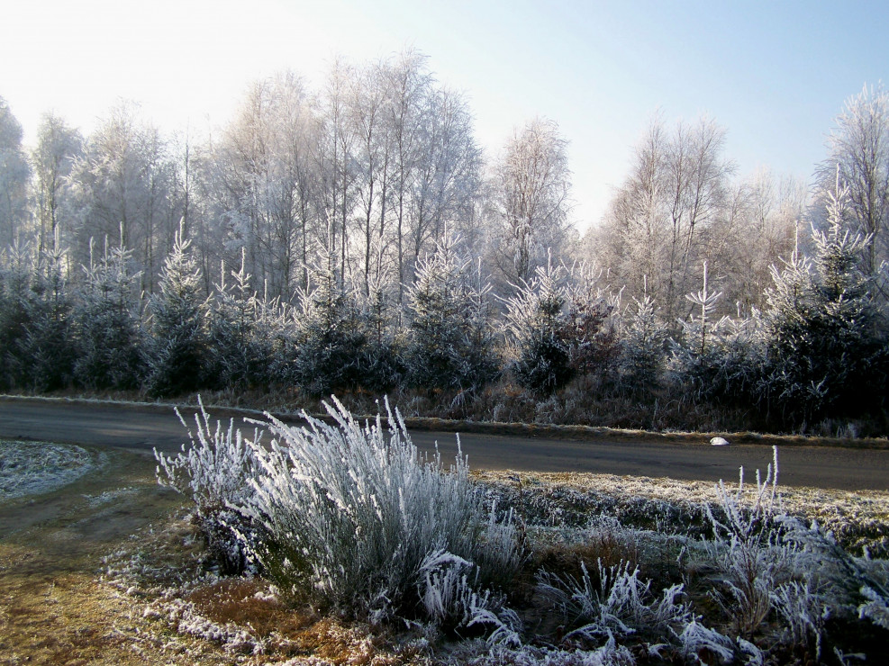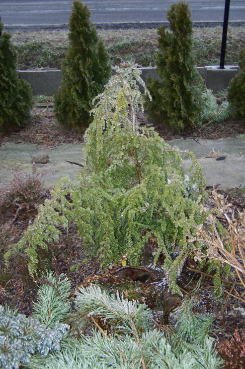 Ogród zimą. Zdjęcia 1-14 są wykonane tegoroczną zimą. Choć zima była łagodna w tym roku i przyszła późno to mimo wszystko można powiedzieć, że mnie zaskoczyła. Ze względu na brak przymrozków nie okryłam w tym roku wszystkich roślinek (w tamtym roku pod okrycia weszły mi gryzonie, czyniąc spore zniszczenia, więc trochę się bałam, aby tak samo nie stało się w tym roku). Rośliny zostały pokryte grubą warstwą lodu, pod którą rośliny aż się uginały. Na szczęście od jego nadmiaru nie połamały się.