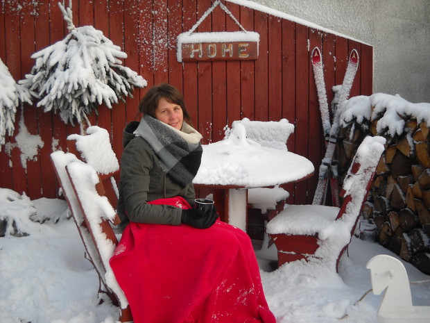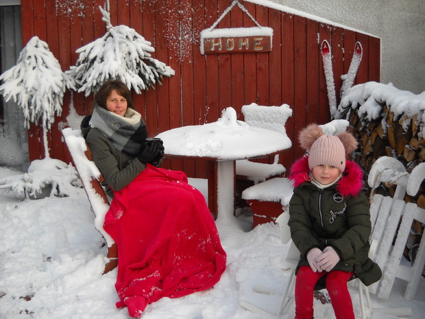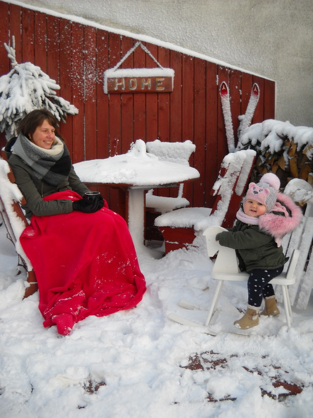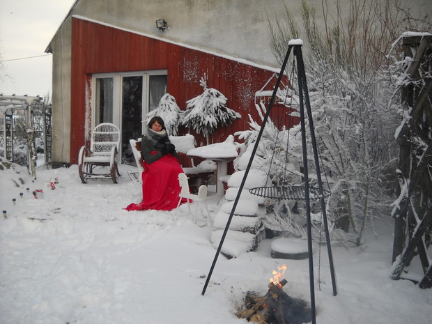 Zimową porą w ogrodzie można spędzić czas na wesoło.Śnieg daje wiele możliwości do zabawy.Nawet gdy mrożno można zasiąść na tarasie z kubkiem gorącej herbatki oraz ogrzać się przy ognisku a także upiec kiełbaski..............................................................................................................................................................................