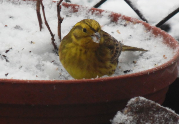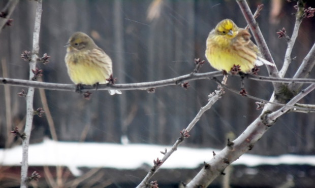 Od wiosny do późnej jesieni mój ogród zdobią różnokolorowe kwiaty, krzewy i drzewka. W zimie funkcje ozdabiania ogrodu przejęły takie oto małe żółte kuleczki. Stadko trznadli, bo o nich mowa, przybywa zimą do mojego ogrodu i okupuje okolice karmnika. Te małe wdzięczne ptaki swoim jaskrawymi kolorkami wyróżniają się na śniegu i wyglądają jak żywe lampki. Uwielbiam je obserwować bo wprowadzają dużo światła i ciepła do mojego ogrodu.