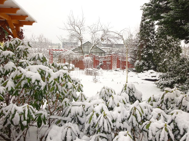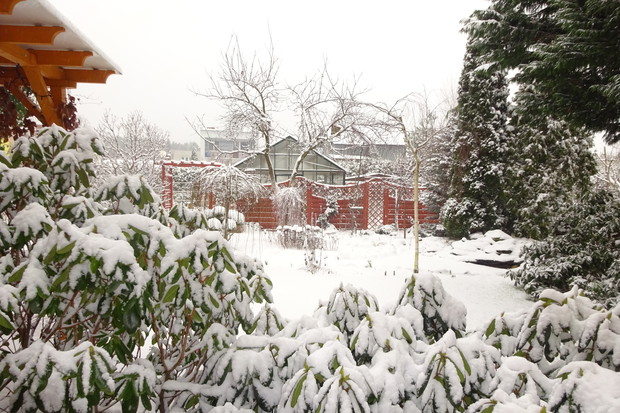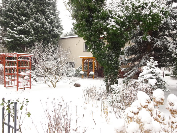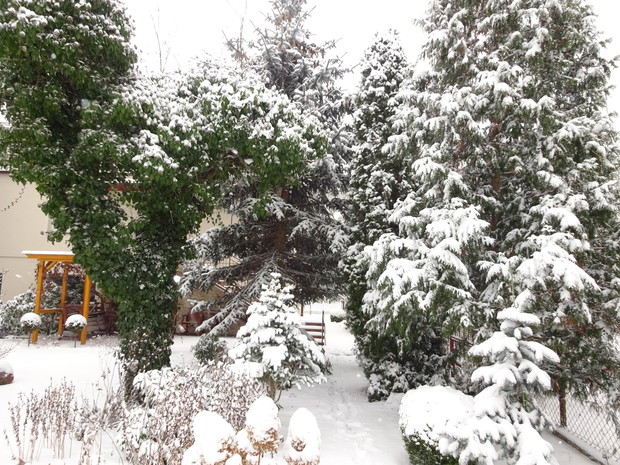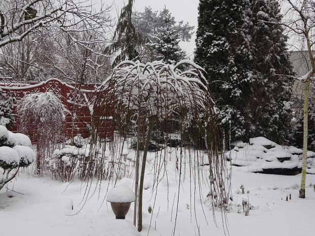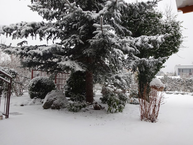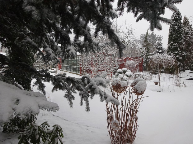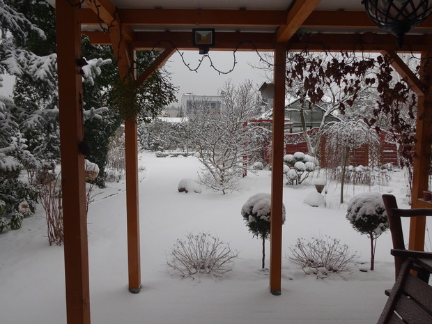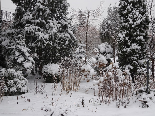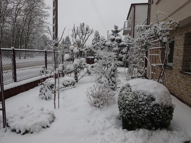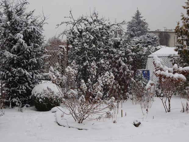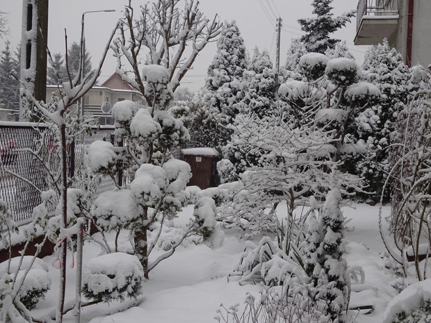 Zima zrobiła nam niespodziankę i zasypała śniegiem. Może to dziwne, bo przecież zima jest od tego, żeby był śnieg. Jednak nie często możemy się nim, a zwłaszcza dzieci cieszyć. Nieskazitelnie biały śnieg powitał mnie pewnego ranka więc szybko chwyciłam za aparat aby to uwiecznić. Cieszyłam się jak dziecko i nawet odśnieżanie chodnika było przyjemne. Rośliny w ogrodzie wyglądają pięknie ubrane białym puszkiem i pewnie im też cieplej. Śnieg już się topi, ale zdjęcia pozostaną miłą pamiątką na bezśnieżne zimy.